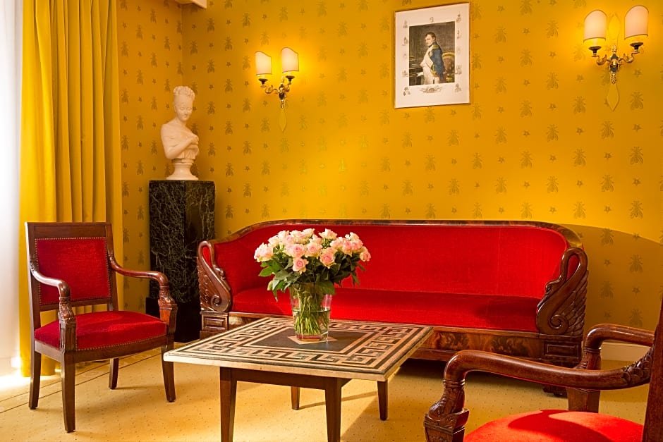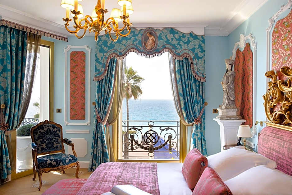 Richly furnished with unique 18th-century French pieces and Sèvres porcelain, this suite features a Louis XVI bed in a spacious bedroom, a private lounge, and a furnished terrace with views of the sea, palm trees and the Promenade des Anglais. This room comes with free parking included in the price.