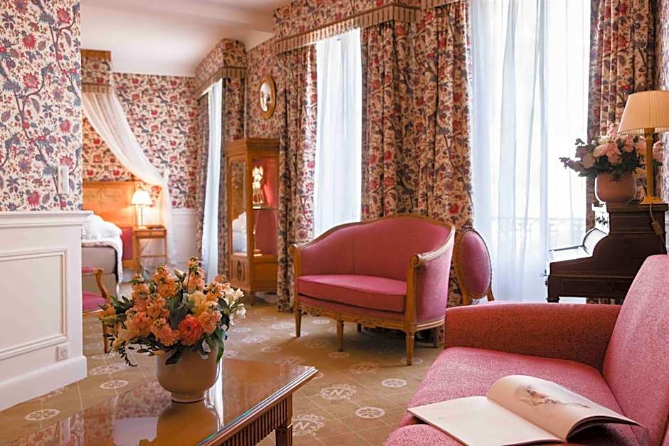 This room has a salon area with a mix of contemporary and antique furnishings. It overlooks the interior dome of the Negresco.