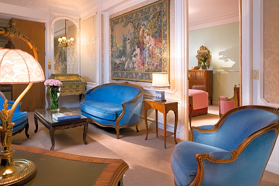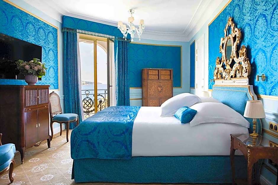 Richly furnished with unique 18th-century French pieces and Sèvres porcelain, this suite features a Louis XVI bed in a spacious bedroom, a private lounge, and a furnished terrace with views of the sea, palm trees and the Promenade des Anglais. This room comes with free parking included in the price.